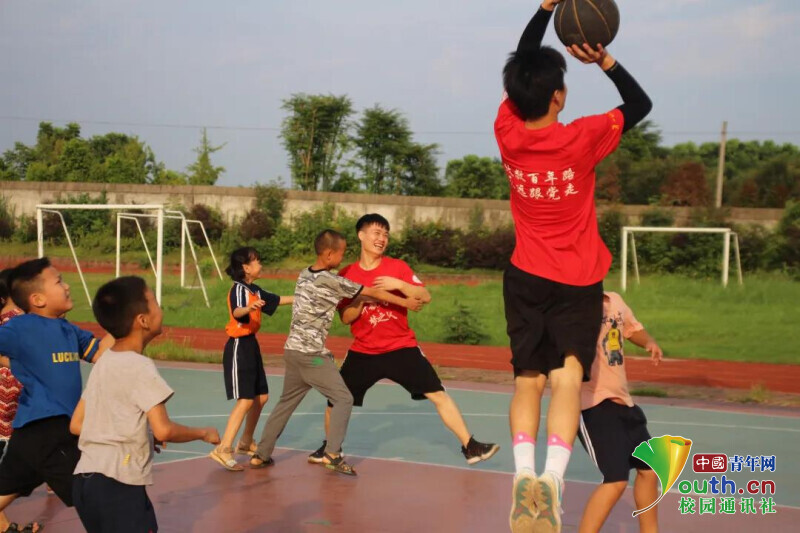 中国青年网益阳7月28日电(通讯员 鄢奕铭 何星逸)2021年7月10日起,bat365中文官方网站信息科学与工程学院新航向·梦之队赴迎风桥镇“致敬百年路,永远跟党走” 乡村振兴实践团24名队员奔赴益阳市资阳区迎风桥镇长塘仑小学,开展为期15天的暑假“三下乡”社会实践活动。队员们尽情挥洒自己的青春热情,为迎风桥学子带来温暖,带去了丰富多彩的课堂:独具匠心的红色趣味故事课、生动有趣的主持朗诵课、动手操作的趣味手工课、活力四射的篮球课……