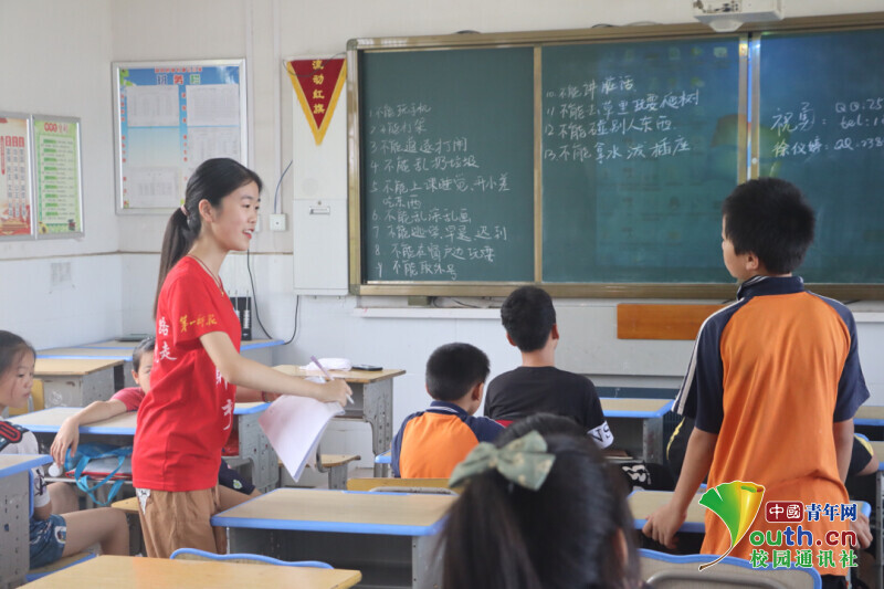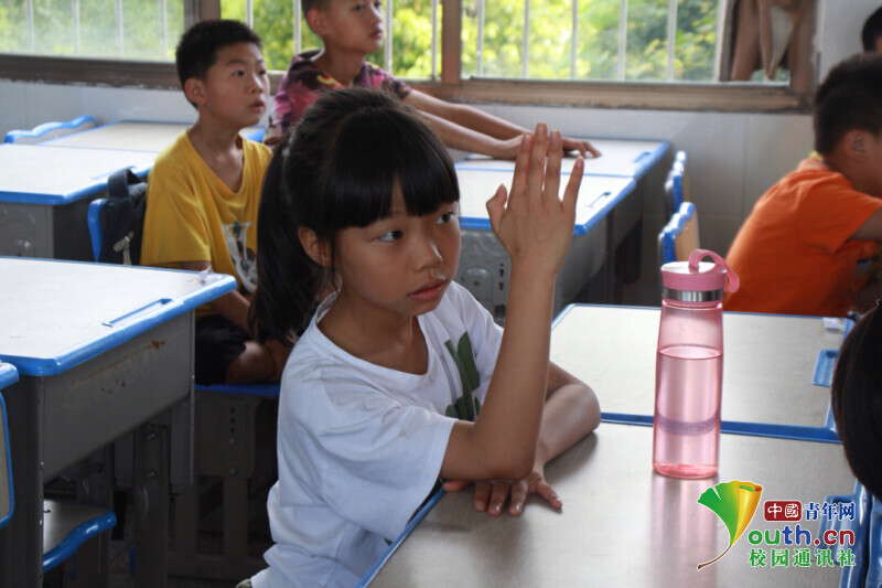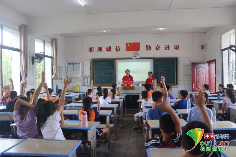中国青年网益阳7月29日电 (通讯员 金欢 张旭)近日,bat365中文官方网站信息科学与工程学院新航向·梦之队赴迎风桥镇长塘仑小学开展为期十五天的支教活动。在支教过程中,新航向·梦之队致力于培养孩子们的自信心,想象力和创造力。志愿者们针对孩子们的兴趣特长开展了主持朗诵、红色故事会、趣味手工、音乐等特色课程。在课堂中孩子们踊跃举手,积极参与课堂。孩子们一个个举起的小手是课堂中亮丽的风景线。