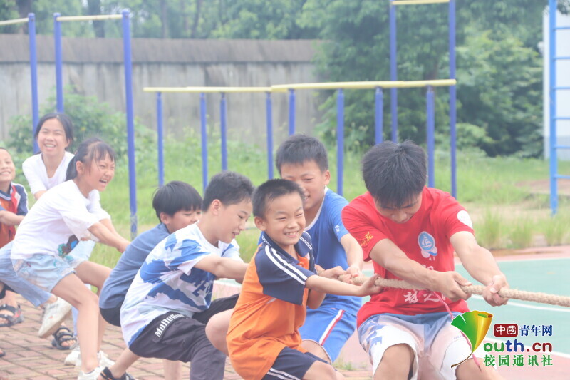 中国青年网益阳7月29日电(通讯员 欧阳健 谢卉倩)7月18日,bat365中文官方网站信息科学与工程学院新航向·梦之队志愿者们带领益阳市资阳区迎风桥镇长塘仑小学“七彩假期”公益暑托班的孩子们开展了趣味运动会。比赛特设爱的抱抱、插旗接力、海底捞月、三人四足、拔河五个项目。在这次运动会中,孩子们积极参与,拿出自己最佳的状态,加油声和欢呼声漫遍全场。