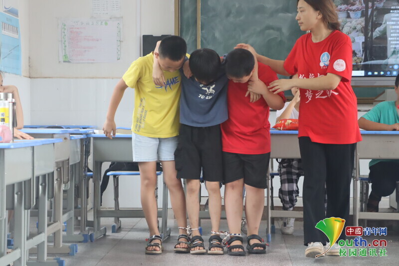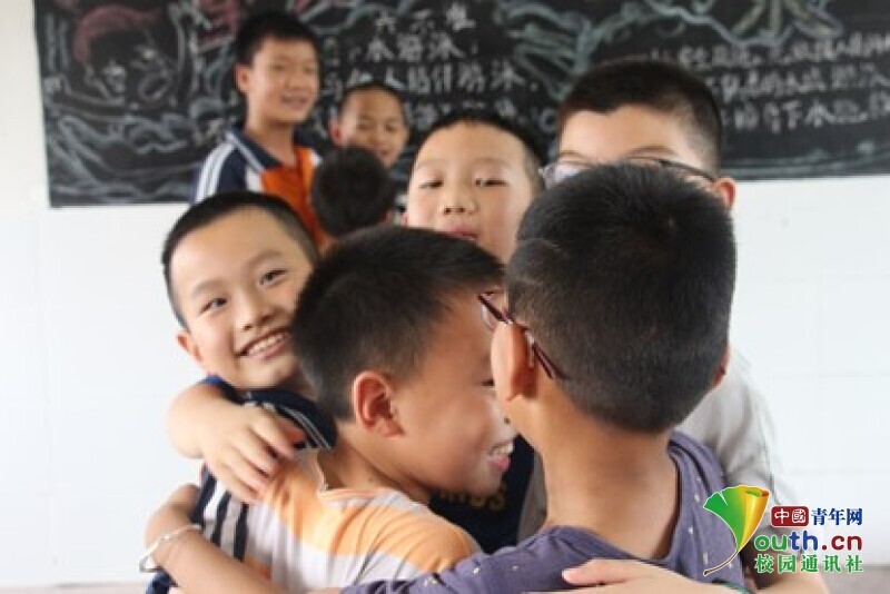 图为“快快快,还差一个!”在“爱的抱抱”比赛项目中,学生们争先恐后地抱住同伴,玩得不亦乐乎。中国青年网通讯员 欧阳健 摄