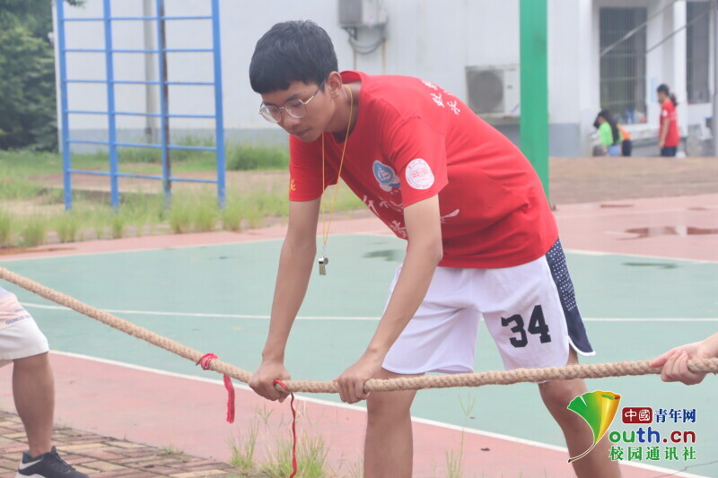 图为“拿好绳子,准备开始!”在拔河比赛项目中,裁判正在控制绳子防止比赛前提开始。中国青年网通讯员 段新利 摄