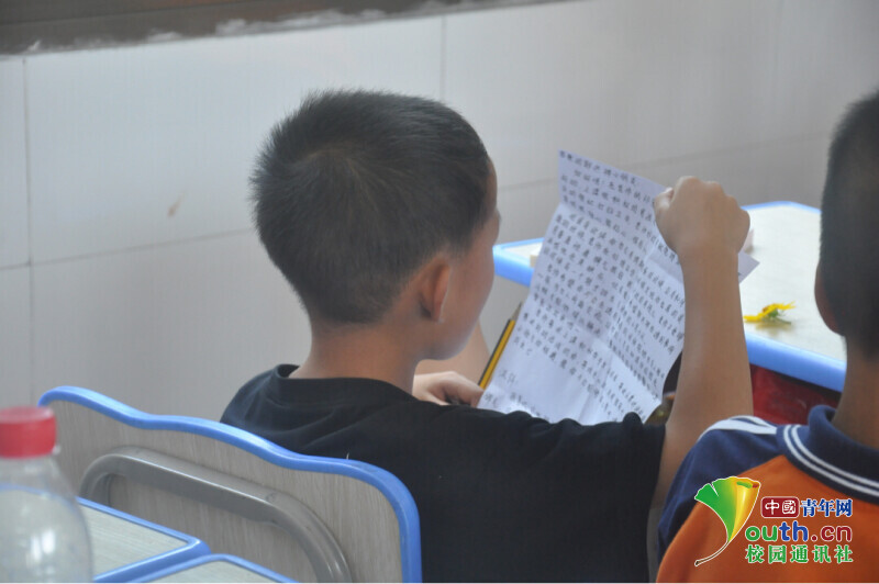 图为孩子正在阅读志愿者写给他们的期望与祝福。中国青年网通讯员 段新利 摄