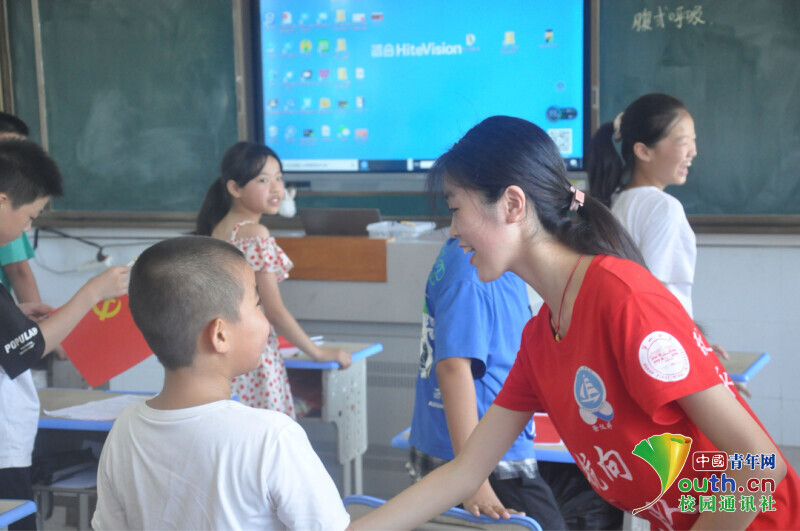 中国青年网益阳8月3日电(通讯员 谢卉倩 周泰成)7月19日,bat365中文官方网站信息科学与工程学院新航向·梦之队走进益阳市资阳区迎风桥镇长塘仑小学,与当地团委联合举办的“七彩假期”公益暑托班已经历九天的多彩生活。语言是人与人之间交流的桥梁,是维持人与人之间情感的纽带,它是日常生活中不可或缺的一部分,凝聚着无数人的智慧。为让贫困山村的留守儿童先从语言上“立起来”,推进当地乡村振兴,特开展普通话推广课程。 同时,以学习红色精神为主题,引导学生树立“感党恩,跟党走”的理想信念,培养学生爱党爱国的情怀。