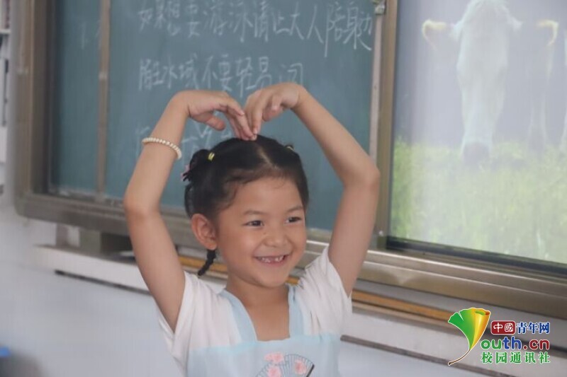 图为一位同学手语课上员们做出了比心的手语。中国青年网通讯员 段新利 摄