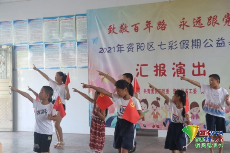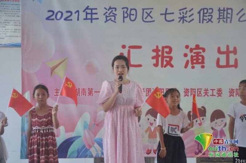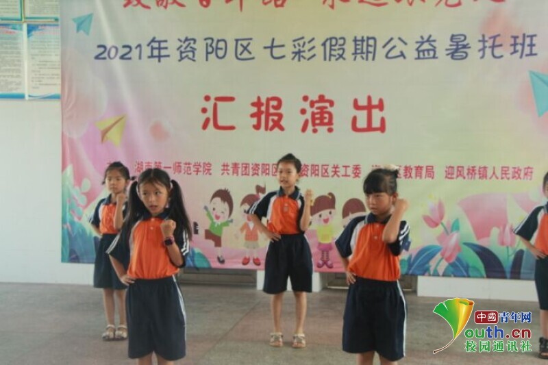 中国青年网益阳8月11日电(通讯员 黄波 张航行)为展示bat365中文官方网站信息科学与工程学院新航向·梦之队赴迎风桥镇乡村振兴实践团到益阳市资阳区迎风桥镇长塘仑小学暑期“三下乡”社会实践成果,志愿者开展以“致敬百年路,永远跟党走”为主题的艺文汇演活动。7月24日,全体学生以及队员做好充分表演准备,在上午九点准时开展文艺汇演活动。队员们用一场精彩纷呈的文艺汇演为此次长达半个月的支教画上了圆满的句号。