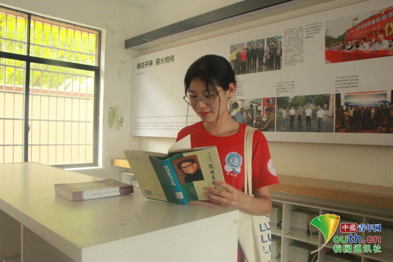 图为队员在张国基纪念馆认真阅览张国基诗文书籍。中国青年网通讯员 段新利 摄