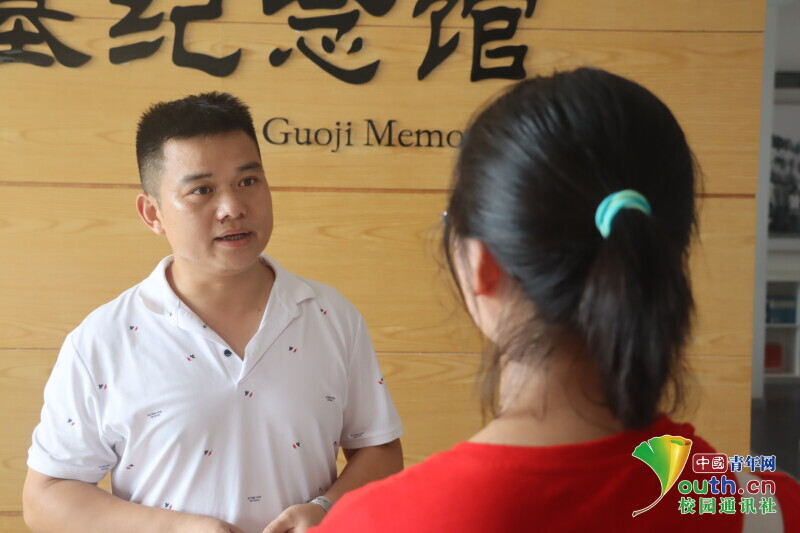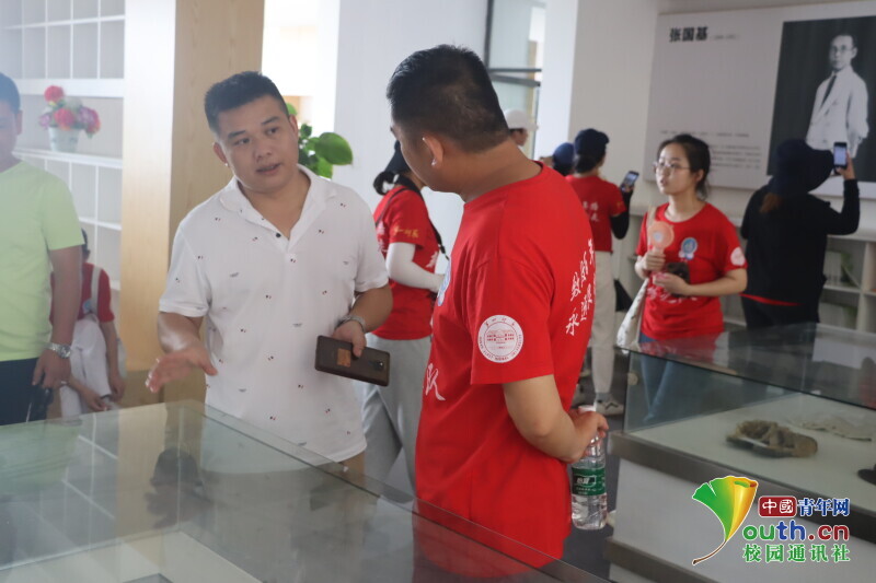 图为队员向纪念馆讲解员了解参观概况,并对伟人张国基先生的事迹进行调研。中国青年网通讯员 段新利 摄