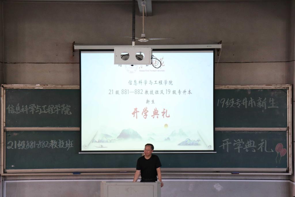 9月12日下午3点,bat365官网于润寰南105举行21级881—882教技班及19级专升本新生开学典礼。学院党总支书记王杰文、副院长田祖伟、学院党总支副书记成夏炎、全体辅导员老师及21级881—882教技班与19级专升本新生、朋辈辅导员、学生干部代表参加。
