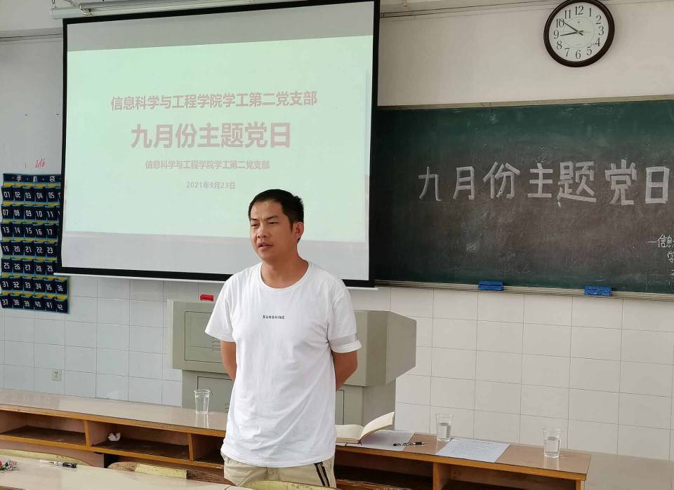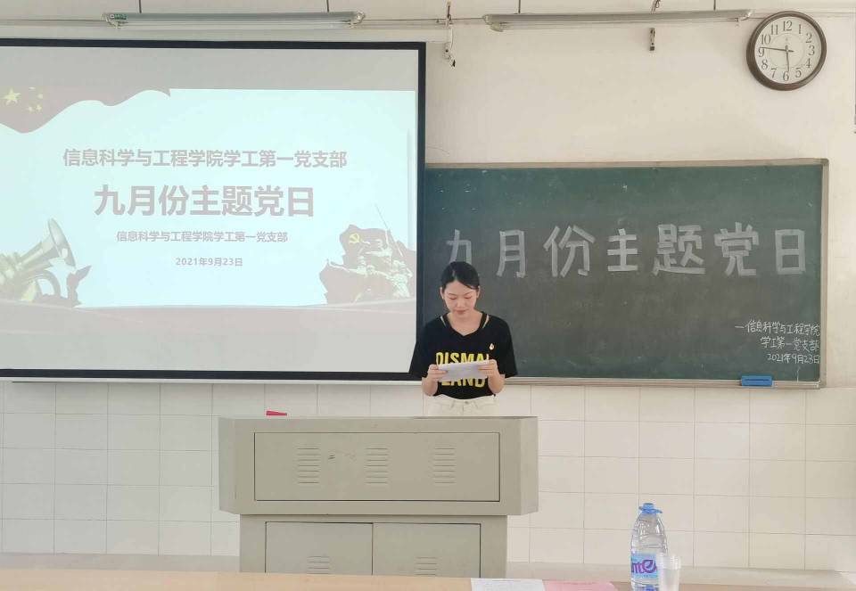 2021年9月23日,bat365官网学工第一、第二党支部均采取线上与线下结合的方式开展九月份主题党日活动,彭思思、罗洵分别主持活动。参加此次活动有学工第二党支部书记李荣敬以及学生党员。