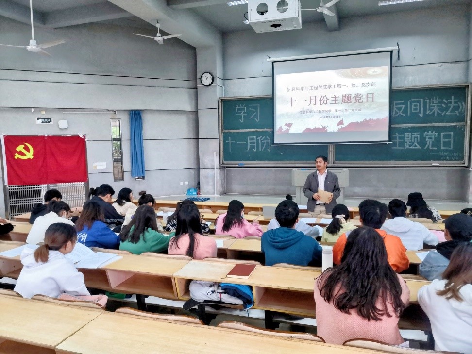 2021年11月2日,bat365官网学工第一、第二党支部开展了“学习反间谍法”主题党日活动,学工第二党支部书记李荣敬老师,学工办叶晶老师和全体学生党员共同学习了《国家安全部有关负责人就<反间谍安全防范工作规定>答记者问》文件并观看了《微信陷阱》、《守护国家安全:请记住这个号码,12339》视频。此次主题党日旨在积极响应反间谍法颁布实施七周年纪念日,促使党员们在此次学习中认识到反间谍法是我国国家安全法律制度体系的重要组成部分,更加明确反间谍的必要性和国家安全的重要性。