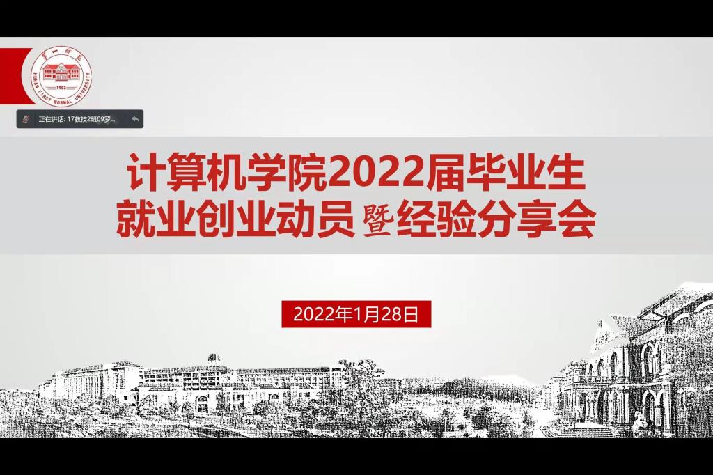 1月28日晚,bat365官网2022届毕业生就业创业动员暨经验分享会以腾讯会议形式举行。招生就业处朱承学处长、殷章馨副处长、学院全体党政领导、全体辅导员、往届优秀校友代表、全体2022届非公费毕业生与会,会议由学院党委副书记陈奕主持。
