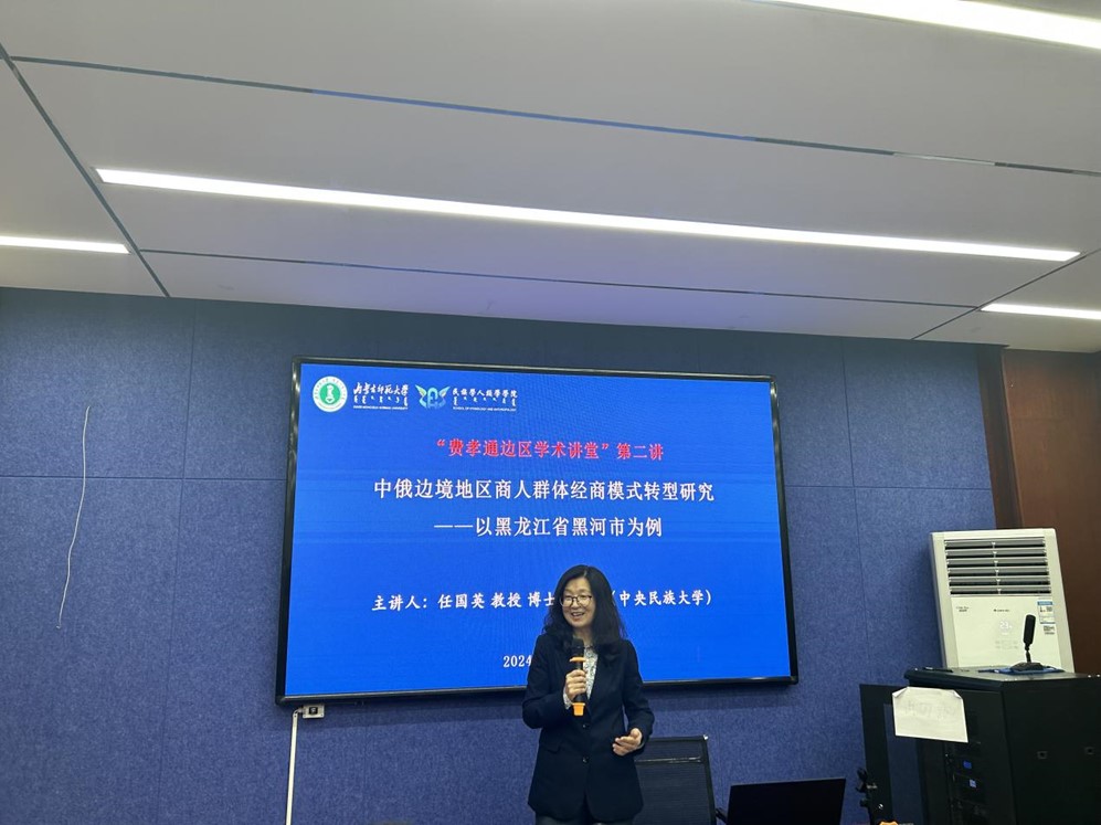 任国英教授以“中俄边境地区商人群体经商模式转型研究--以黑龙江省黑河市为例”为题,通过对20世纪90年代以来的中俄边境地区商人群体经商模式转型的历史考察,以微观的商人个体为研究起点,在宏观的国家政治经济政策变迁背景下,寻求当代中俄边境地区商人群体经商模式转型的深层次原因和行动逻辑,进而揭示出中俄边境地区商人群体的生存策略,并概括出商人群体经商模式从“倒商”--“坐商”--“电商”的转变,为在场的师生们献上了一场学术的盛宴。