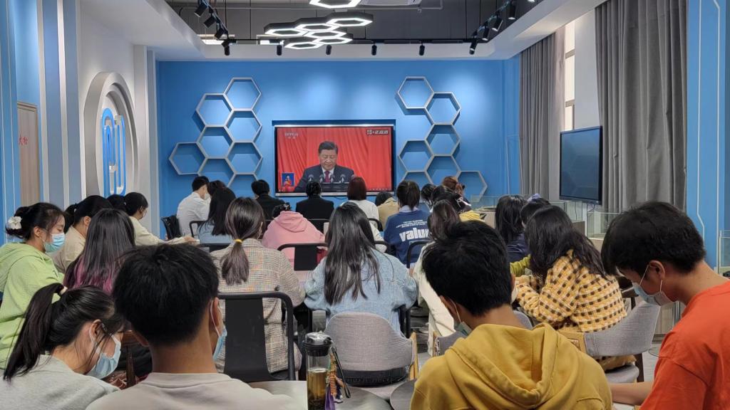 10月16日,bat365中文官方网站党委组织学院师生通过线上线下结合的方式观看党的二十大开幕式,认真聆听学习习近平总书记的大会报告。