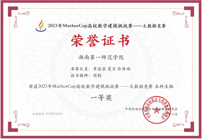 2023年第四届MathorCup高校数学建模挑战赛——大数据竞赛圆满落下帷幕,bat365官网四支参赛队伍在激烈的竞争中脱颖而出,斩获了全国研究生组二等奖1项,本科生组一等奖3项。这一骄人成绩的取得,正是参赛队员们的辛勤付出和指导教师的悉心指导的结果。
