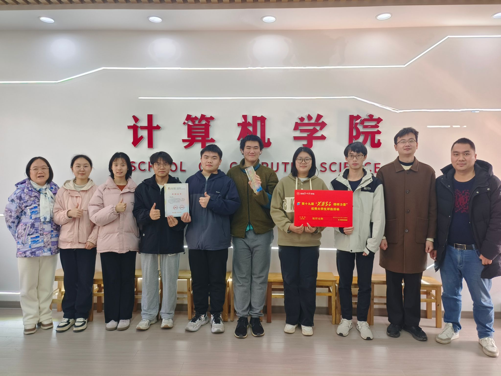 bat365官网智汇团队凭借在专业竞赛中的突出表现,荣获校第十九届“芙蓉学子·榜样力量”学术创新奖。该奖项充分肯定了团队成员在学术创新与实践探索中的卓越成绩。智汇团队由跨年级的8名成员组成,包括21级计科3班张任也,22级计科4班覃苏苏、夏月、熊涛、曾雨、梁欣如,22级计科5班蔡宇,以及23级计科1班刘坤浩。团队在唐德燕、周聪两位教师的专业指导下,通过持续协作与创新突破,在学科竞赛领域取得了显著成效。