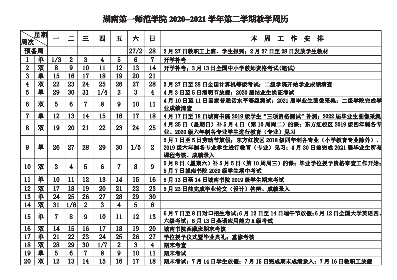 附件 bat365中文官方网站2020-2021学年第二学期教学周历.doc