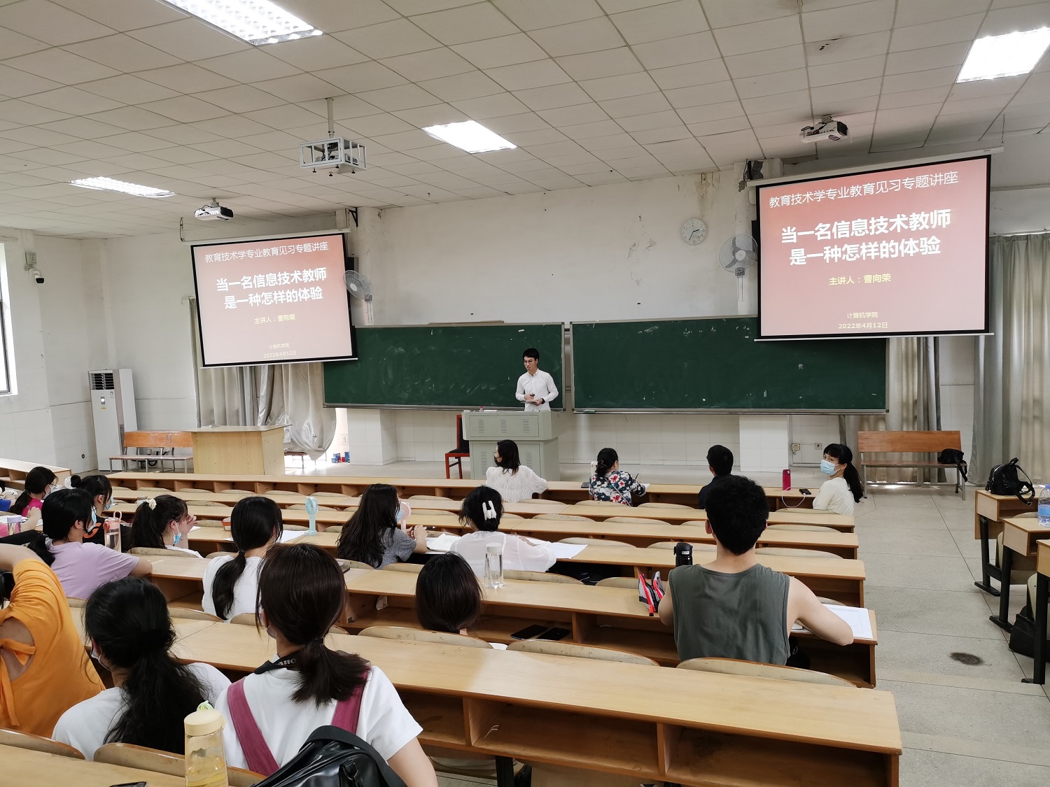 2022年4月12日,2016届优秀毕业生曹向荣受邀在玉衡南201为bat365官网教育技术学专业学生开展《当信息技术教师是一种怎样的体验》教育见习专题讲座。副院长何向阳、教育见习指导老师、教育技术系部分老师、20教技1班、21级教技881及882班全体同学参加了讲座。讲座由教育技术系副主任刘琳主持,