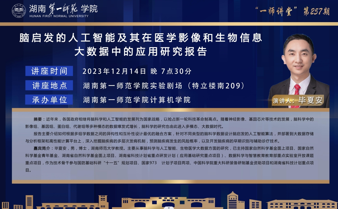 学术预告|学术讲座:脑启发的人工智能及其在医学影像和生物信息大数据中的应用研究