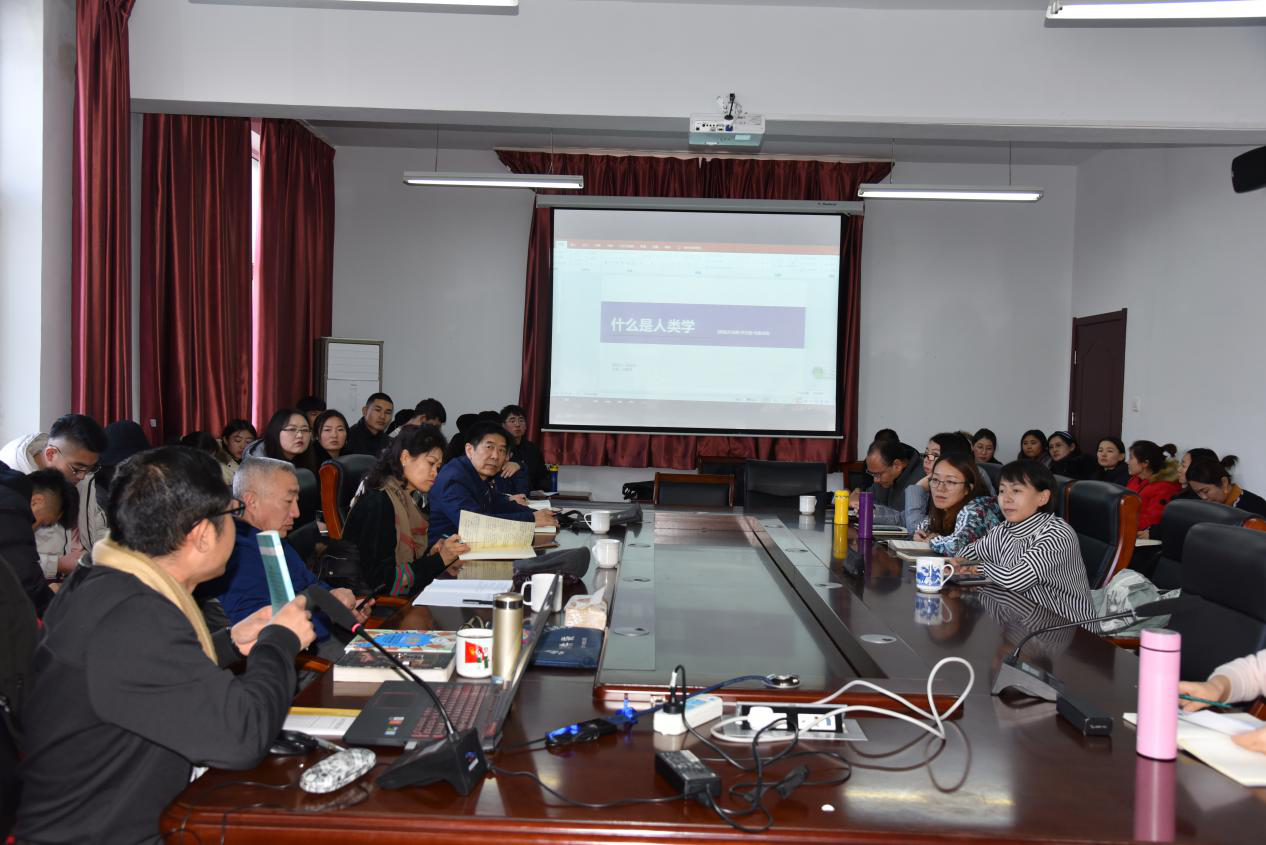 为了提高米兰官网师生对人类学的认识,增强专业学术感,米兰milan官方网站于2019年12月29日下午3点在科研楼301举行第八期读书会,民族学博士苏玉明老师为大家领读了挪威人类学家埃里克森的专著《什么是人类学》一书。本次读书会由博士生李丽萍主持,院长乌日陶克套胡老师、丁龙召老师、塔娜老师、普华才让老师、张径真老师、李玉峰老师、杨冰华老师、包双成老师以及博士生、硕士生、本科生共53人参加了本次读书会。