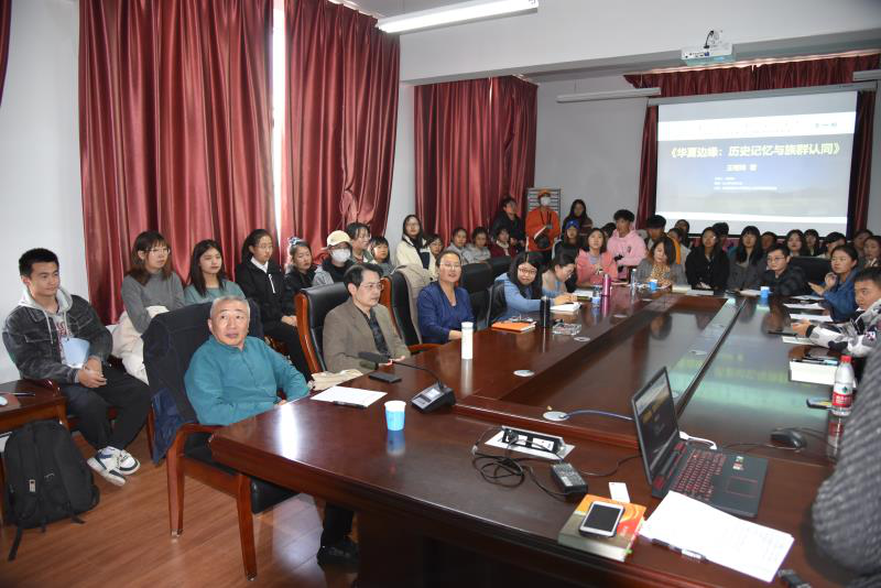 接下来,同学们开拓思维纷纷提出了自己的疑问,现场展开了热烈的讨论。与会师生们从种族,族群,种群,人群几个专业概念的辨析入手,进而上升到现实关怀层面,就民族文化认同与铸牢中华民族共同体间的关系问题进行了深入的思考交流。同时赵树冈教授和乌日陶克套胡院长还就边缘的概念和历史的客观性问题进行了中肯的剖析,“边缘”是一个相对性的概念,它不是固定的,而是动态变化的,是刻着历史时代烙印的。对于历史是否客观而言,应该说没有绝对的客观公正,因为史书,文献,都会带有一定的主体性及作者们的意志,因而也呈现出历史多元化的视角与多层次的解读。这种建构历史的视角背后所依的还是最根本的因素——社会经济基础。历史很大程度上是为现实服务的,是与现实需要,政策需要,国家建设需要密不可分的。所以“历史”与历史事实的范畴是要科学的区分开来的。两位老师精彩的说法获得了大家的一致认同。