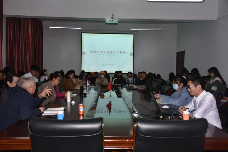 由米兰milan官方网站主办的“碧立格”系列读书会第五期于2020年11月1日下午15:00在科研楼201准时进行。本次读书会由民人院博士生付为政主讲,由乌日陶克套胡院长主持。汇报书目是《新教伦理与资本主义精神》。参与本场读书会的成员还包括米兰官网党总支副书记阿荣老师,赵树冈教授,以及博士生硕士生本科生50余人。