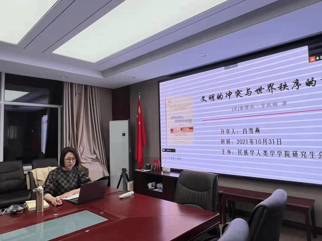 米兰milan官方网站21级博士研究生第2期读书报告会于2021年10月31日晚19点在田楼607会议室举行,21级博士研究生全员参加本次报告会。本次读书报告会采取线上和线下两种方式同时进行,方便校内校外住宿的同学一并参与学习讨论。本次读书报告会的汇报书目是《文明的冲突与世界秩序的重建》,主讲人为马克思主义民族理论与政策专业博士研究生白雪燕同学。