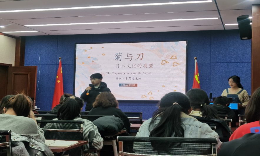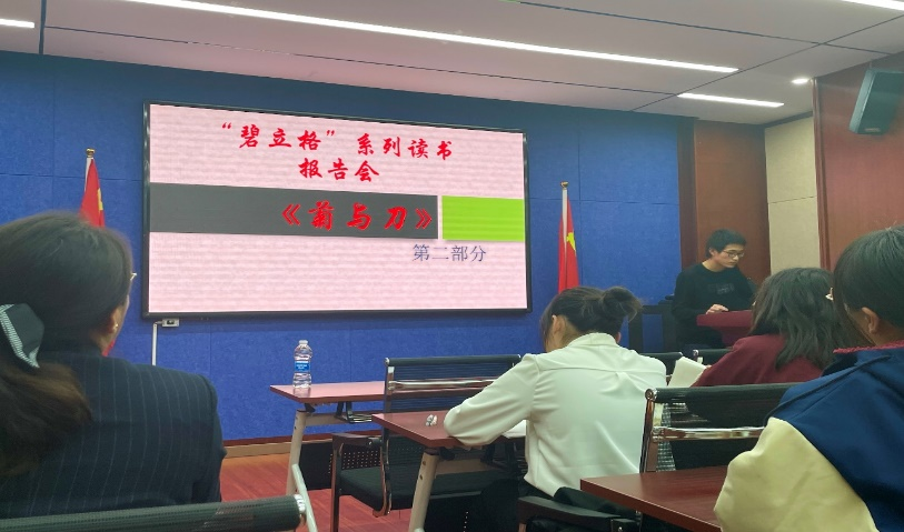 11月19日傍晚19:00,米兰milan官方网站2021级本科班在田楼615会议室开展了第三期“碧立格”读书报告会,指导老师包美丽、班主任云中老师莅临现场,梁东新同学主持活动,由赵育婕同学和张学毅同学主讲本尼迪克特的著作《菊与刀》。