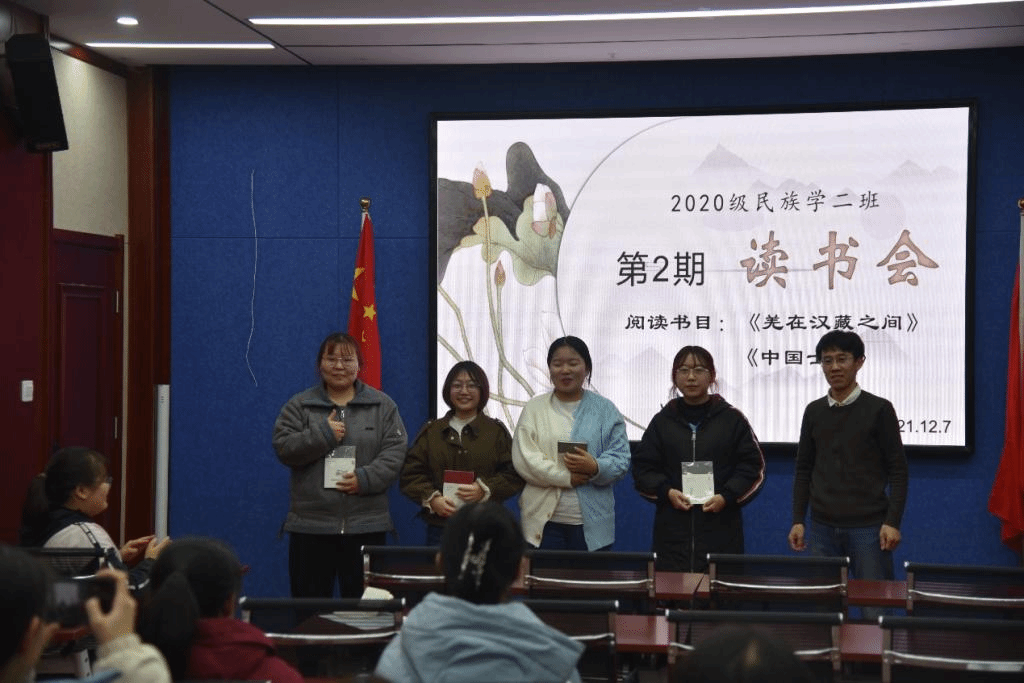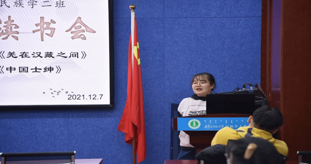 2021年12月7日19:00时,米兰milan官方网站2020级民族学2班全体同学在田楼615会议室开展第2期“碧立格”读书报告会,班主任那日苏老师莅临现场,张楠同学主持读书会。主讲内容是,兰晶同学分享费孝通的《中国士绅》,刘燕燕同学分享王明珂的《羌在汉藏之间》。