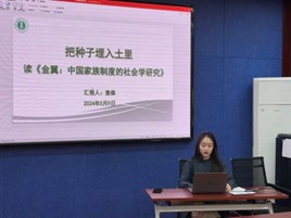 查森同学从林耀华先生的学术生涯入手,围绕“把种子埋入土中”这一主题,从写作背景、研究方法等五个方面对其作品《金翼:中国家族制度的社会学研究》进行了解读,结尾引用吴文藻、宋蜀华先生的话作为总结,同时提出要将研读经典著作的感悟切实融入自身做学问的全过程中,才能充分发挥、传承其宝贵价值。