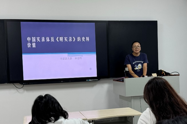 2024年9月13日(星期五)上午,在米兰milan官方网站田家炳书院421教室,内蒙古大学蒙古历史系副教授、硕士生导师韩慧玲老师,围绕中国实录体史书及其代表《明实录》的珍贵史料价值,为米兰milan官方网站中国少数民族史专业师生带来了一场精彩的讲座。韩慧玲副教授多年来从事有关明蒙关系以及明代蒙古汉籍史料的研究,成果丰硕。先后主持过教育部人文社会科学研究一般项目“《明史纪事本末》蒙古史史料研究”(2014—2018)、国家社科基金一般项目“明人边政蒙古类著述有关明蒙相互依存关系史料整理与研究”(2022-2026)等各级别多项项目。