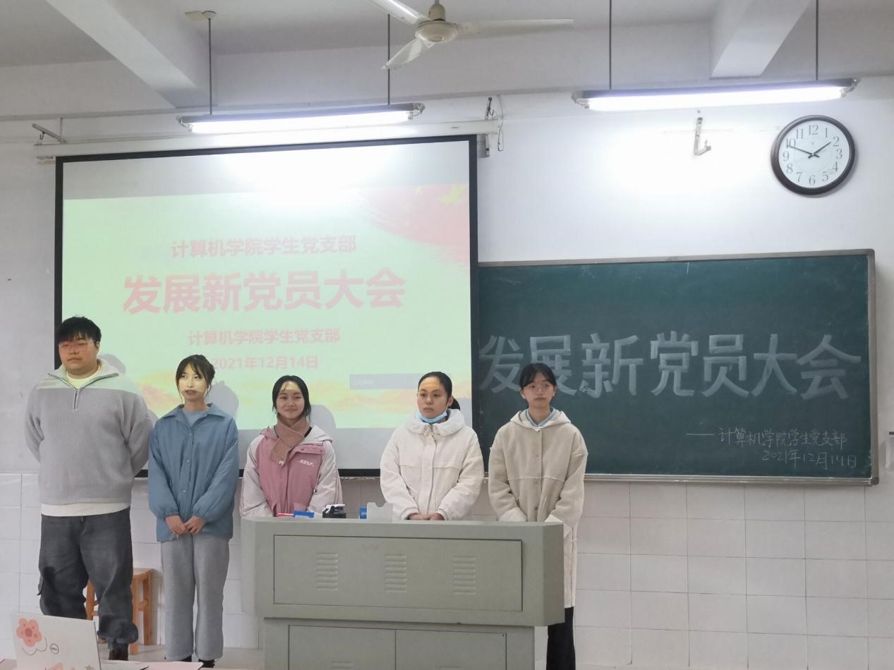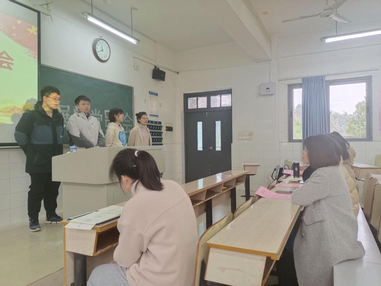 2021年12月14日,bat365官网于玉衡北309、玉衡北310召开发展新党员大会,并于腾讯会议同步进行线上会议。参会人员有学院党委副书记陈奕、党支部书记关红儒以及学生党员、发展对象。会议分别由罗林、苏琴主持。