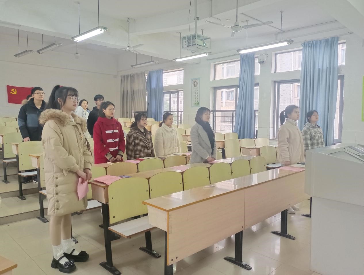 “满腔的热血已经沸腾,要为真理而斗争。”大会在雄浑激昂的《国际歌》中拉开序幕,发展对象汇报了在发展阶段的思想变化并宣读《入党志愿书》,表明自己对党忠诚、积极工作、为共产主义奋斗终身、随时准备为党和人民牺牲一切、永不叛党的决心。