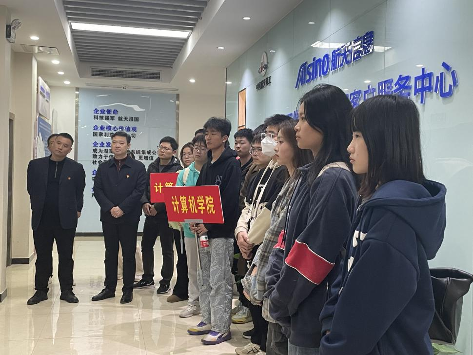 随后,大家来到湖南航天信息有限公司,实地参观湖南航信的党建工作示范点、品牌文化建设示范点等,湖南航信第一党支部副书记曾真为大家讲解了企业发展历程和企业行业建设发展经验。参观结束后,双方在湖南航信会议室开展党课和交流活动,活动由李江华主持。覃巍主讲“新时代以航天精神凝心铸魂的思考”主题党课,寄语参会学生继承和发扬老一辈航天人艰苦创业的航天精神,只争朝夕、坚韧不拔。