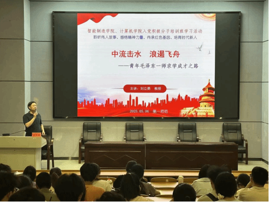 5月6日,文学与新闻传播学院党委书记刘立勇在怀中南110,为bat365中文官方网站、智能制造学院入党积极分子讲授党课,主题为“中流击水,浪遏飞舟——青年毛泽东一师求学成才之路”。
