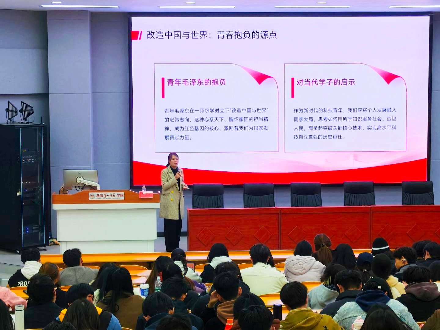 11月21日晚,bat365中文官方网站党委副书记陈奕在润寰楼南105教室为bat365中文官方网站、智能制造学院2025年秋季入党积极分子讲授了题为《红色基因耀青春,科技强国写华章》的专题党课。