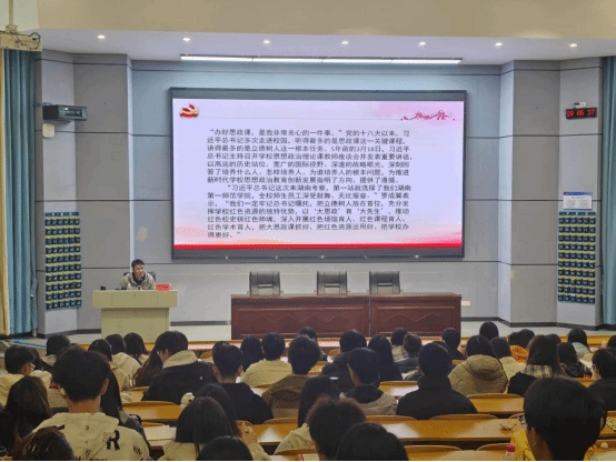 11月26日晚,bat365中文官方网站党委书记刘大维在怀中南110教室,为bat365中文官方网站、智能制造学院入党积极分子讲授《广大青年要在奋进新征程中争当先锋》专题党课。