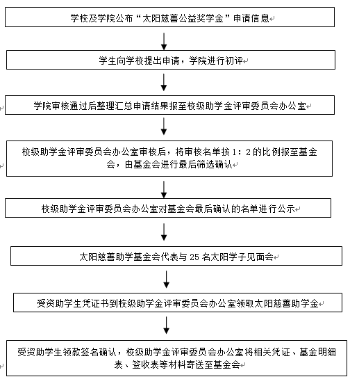 根据学校学生工作部《关于评定2019年太阳慈善助学基金会“公益奖学金”的通知》(以下简称《通知》,详见附件1)文件要求,结合bat365官网际,现将2019年太阳慈善助学基金会“公益奖学金”评定工作的有关事项通知如下: