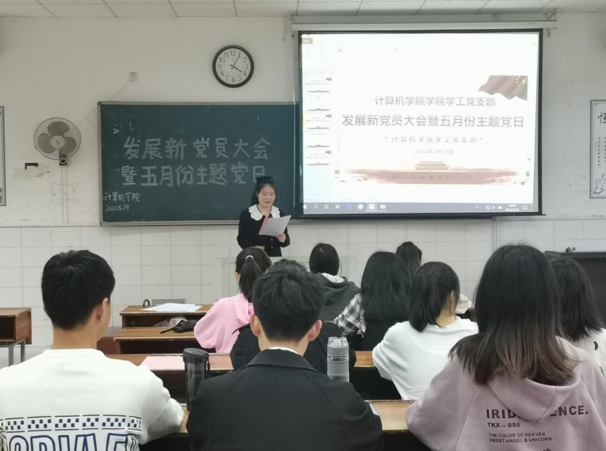 bat365官网于2022年5月19日开展了发展新党员大会暨五月份主题党日活动。与会人员有学院党委书记刘立勇、党委副书记陈奕、学工党支部书记关红儒、学院团委书记叶晶、学工办老师付小霞、全体学生党员以及发展对象。