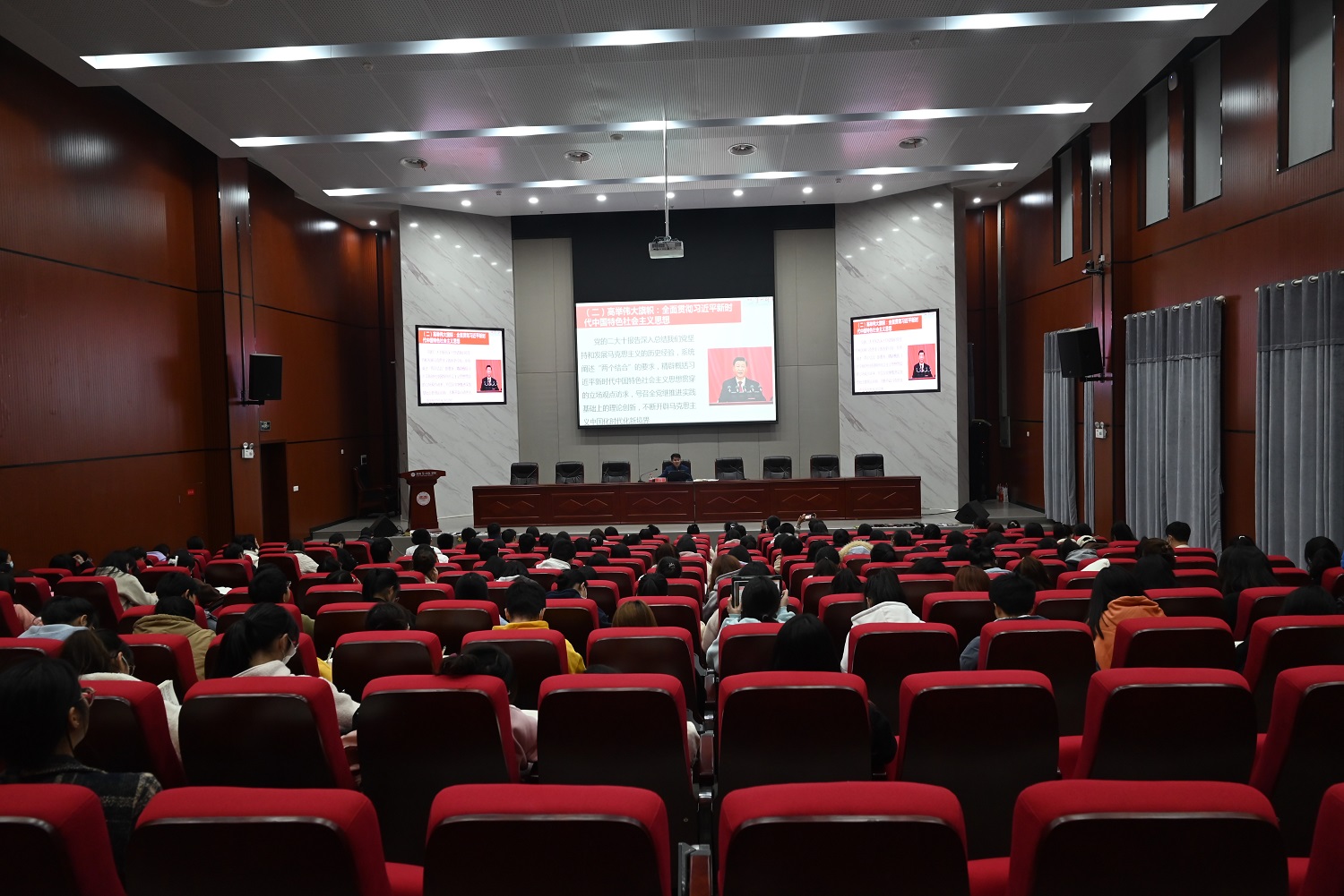 周发明从党的二十大召开的历史背景、大会主要内容、大会的主要成果等三个方面进行了讲授,重点介绍了二十大报告重要内容。周发明指出,党的二十大报告是在全党全国各族人民迈上全面建设社会主义现代化国家新征程、向第二个百年奋斗目标进军的关键时刻召开的一次十分重要的大会。大会报告,回顾总结了过去五年的工作和新时代十年的伟大变革,阐述了开辟马克思主义中国化时代化新境界、中国式现代化的中国特色和本质要求等重大问题,擘画了全面建成社会主义现代化强国的宏伟蓝图和实践路径,就未来五年党和国家事业发展制定了大政方针、作出了全面部署。