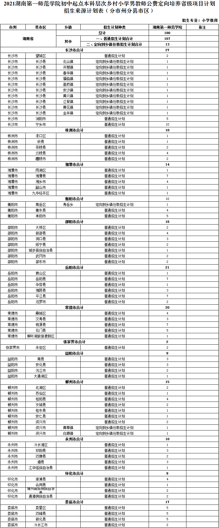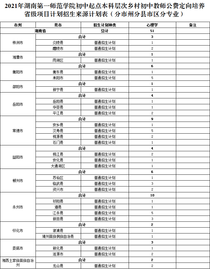 附件3 2021bat365中文官方网站初中起点本科层次乡村小学男教师公费定向培养省级项目计划招生来源计划表(分市州分县市区).png