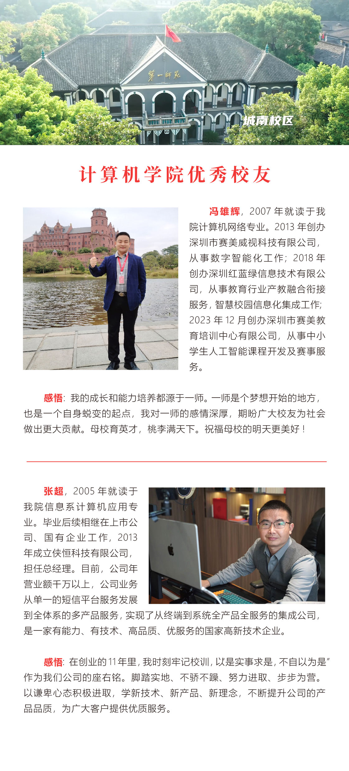 学院立足长沙、面向行业、依托企业、服务区域,主动对接国家和区域经济社会发展需求,以“一四”战略为指引,全面落实 “两坚持两拓展”办学思路,坚定不移地走 “特色鲜明的师范大学”发展之路,确立“建设一流学科,组建一流团队,引育优秀人才,争创优质成果”发展目标,切实履行做大计算机类学科的光荣使命。