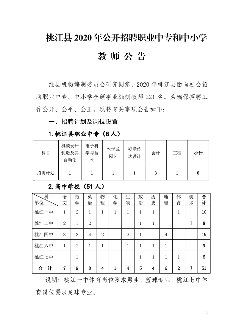 桃江县 2020 年公开招聘职业中专和中小学教师公告