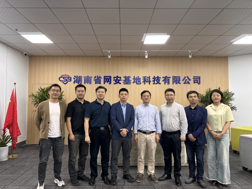 湖南省网安基地科技有限公司,考察人员一行参观了基地教学楼,了解了基地的总体规划、办学情况、发展定位以及产学研合作模式。座谈会上,双方就如何加强校企合作、共同推动网络安全人才培养和科研创新等方面进行了深入交流。熊烨指出,校企合作是双方协同发展的重要一环,期待双方通过优势互补,在网络安全人才培养、实习实训等方面展开深入交流,并表示将全力支持学院在网络安全领域的发展,希望与学院在人才培养和科研合作等方面实现共赢。杨恒伏简要介绍了学校和学院的发展情况指出,学院将积极与网安基地建立长期稳定的合作关系,共同推动网络安全人才培养模式的创新,为学生提供更多实践机会和就业渠道。同时,学院也将加强与网安基地在科研合作方面的联系,共同开展网络安全领域的前沿研究,推动科研成果的转化和应用。