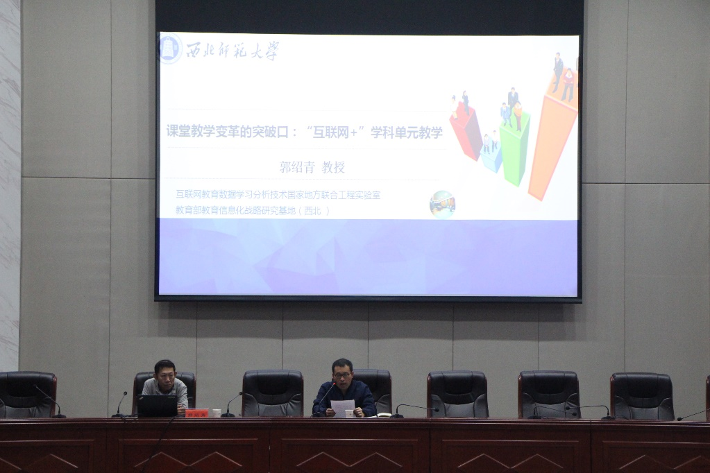 9月22日,西北师范大学智能教育研究院院长、互联网教育数据学习分析技术国家地方联合工程实验室主任、博士生导师郭绍青教授应邀来bat365官网在百熙楼228会议室开展学术讲座。我院全体教师、部分学生代表聆听了讲座,讲座由我院院长满君丰主持。
